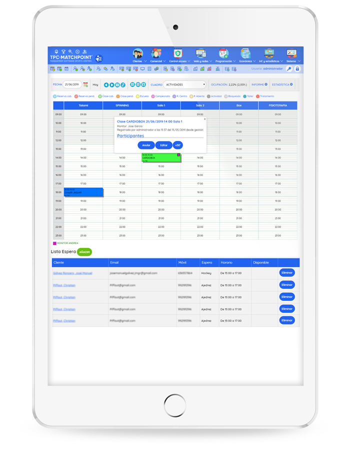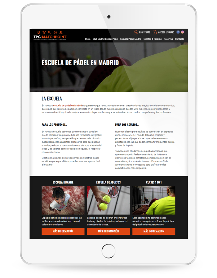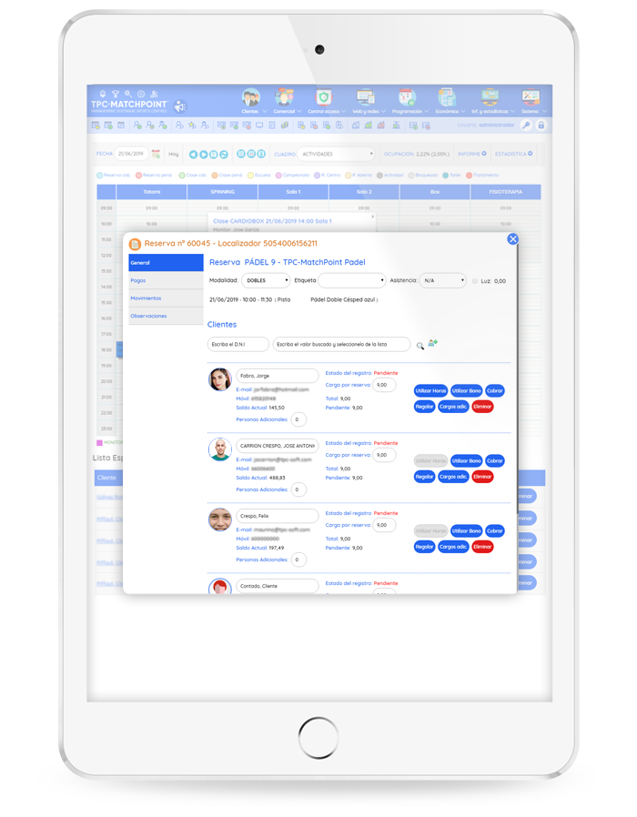 Tpc-matchpoint es un software que le permite gestionar su centro de forma integral, pensado tanto para clubes privados, como polideportivos, centros de alta capacidad o pequeñas instalaciones deportivas.