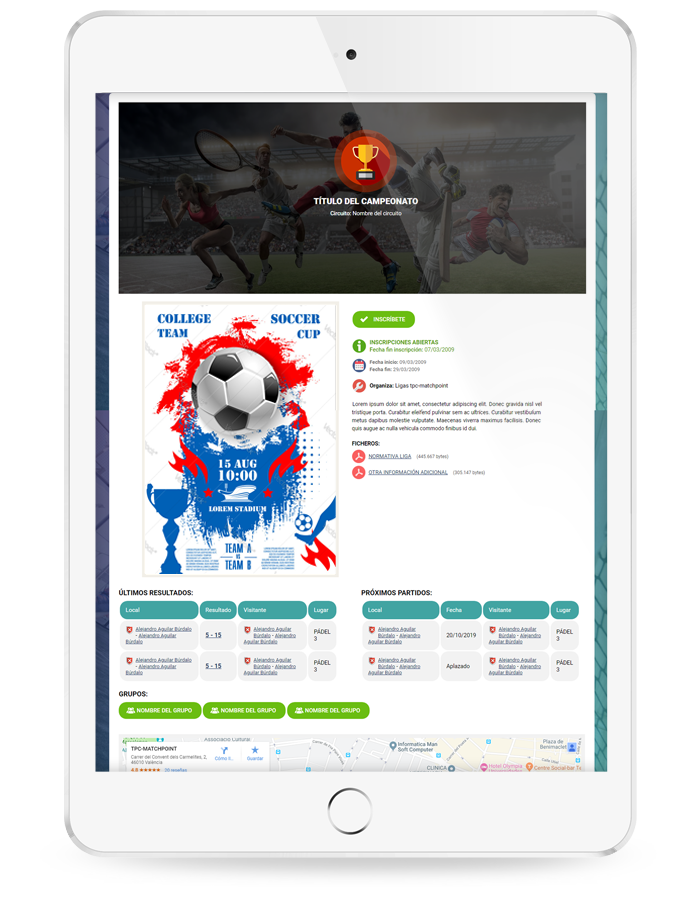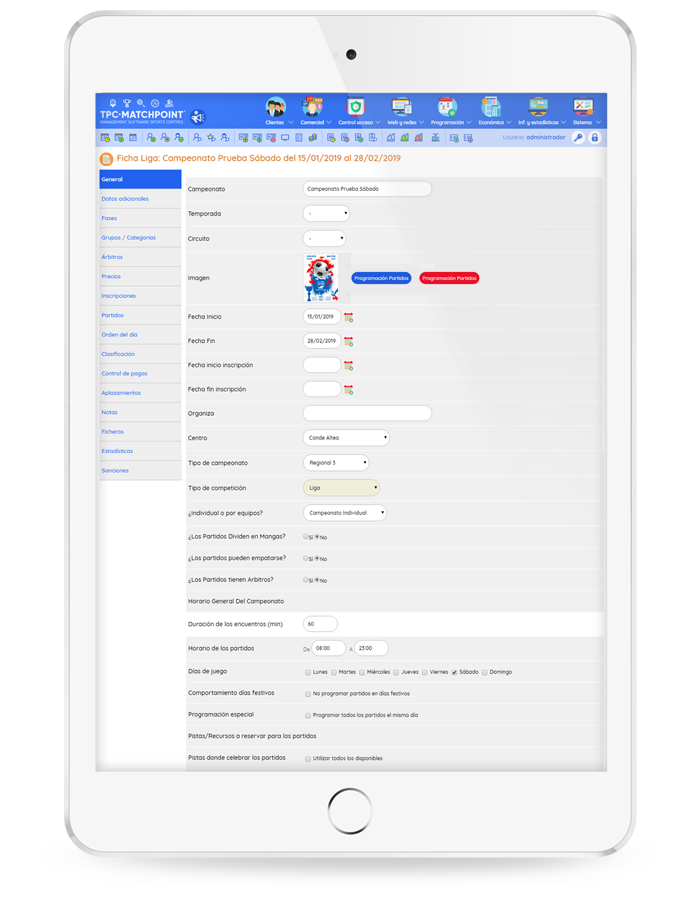 Sáquele el máximo partido a su centro gracias a la explotación de escuelas y campeonatos.