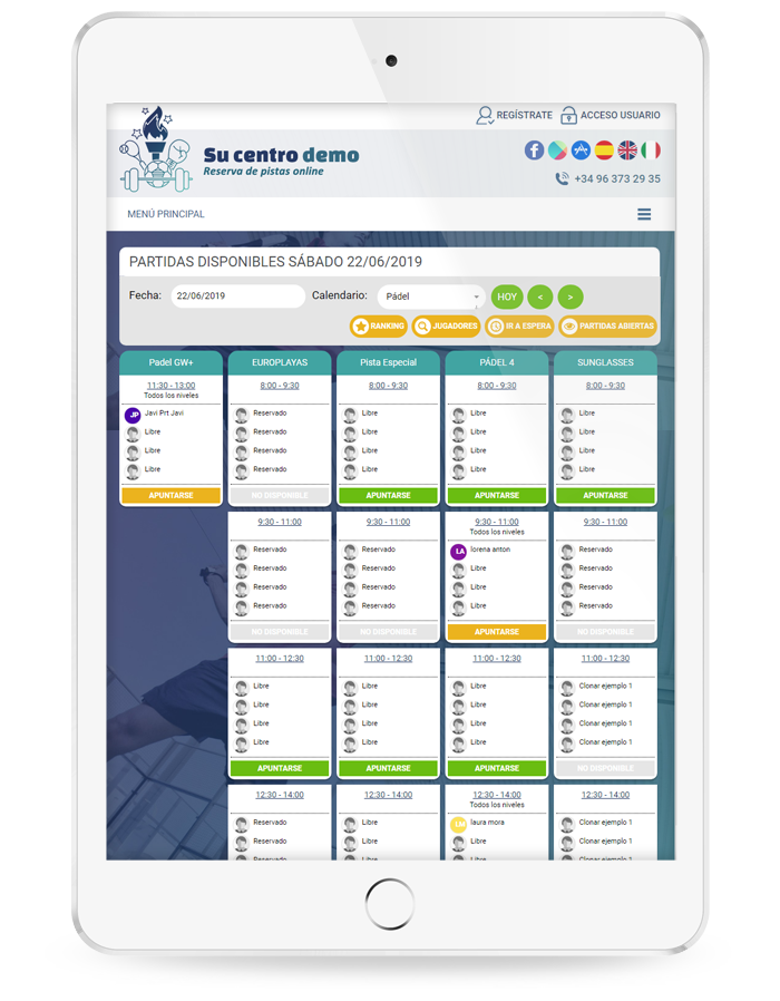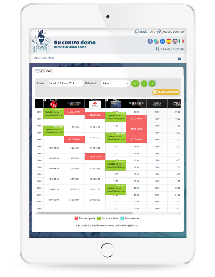 El sistema está totalmente automatizado con pago por tarjeta de crédito. Esto facilita al máximo la reserva, tanto a sus clientes, como al propio club.